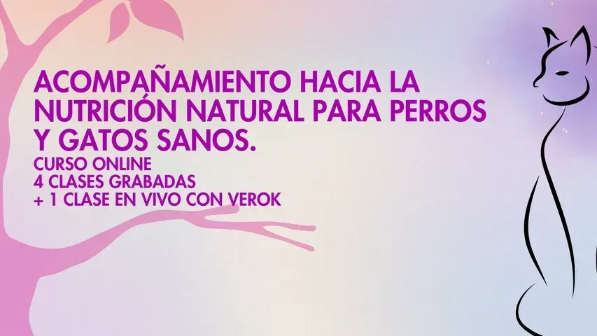 Acompañamiento hacia la nutrición natural para perros y gatos sanos. 4 clases grabadas + 1 clase práctica grabada con VeroK